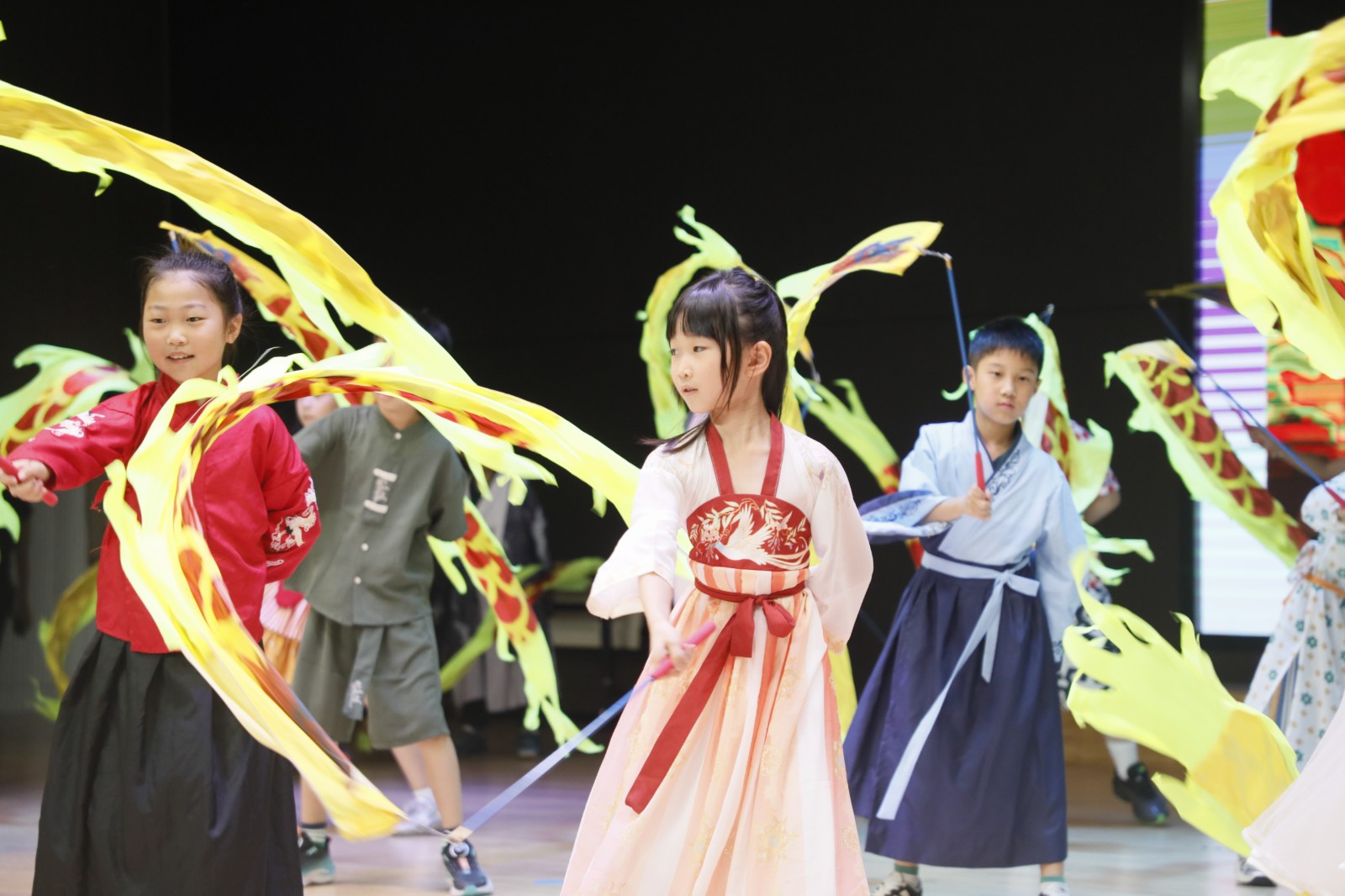 开场的《青花瓷》独唱温柔又有韵味;金色龙身跟着鼓点翻飞,师生的舞龙表演直接点燃全场;一、二年级小朋友的合唱奶声奶气,却格外认真。