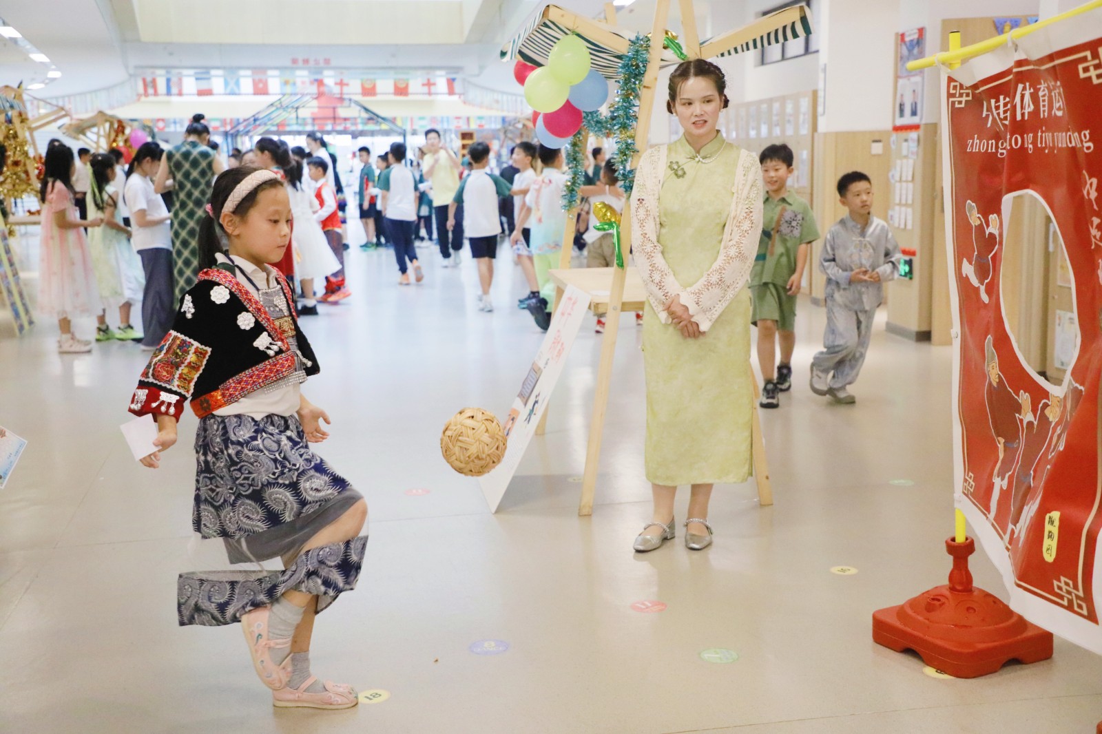 四、五年级的“升级版汉服秀”更为惊艳;中华知识竞答环节,同学们抢着回答“重阳登高”的学问,外教老师也跟着凑热闹,慢慢摸清了中国文化的小知识点。